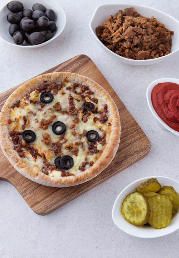 Phô mai (Mozzarella, Gouda), bột mì (Mỹ, Canada), sốt cà chua, thịt bò xay chế biến, gạo đen Hàn Quốc, rau củ muối chua, dầu đậu nành, men, đường, muối, bột whey, chất cải thiện bột & enzyme.